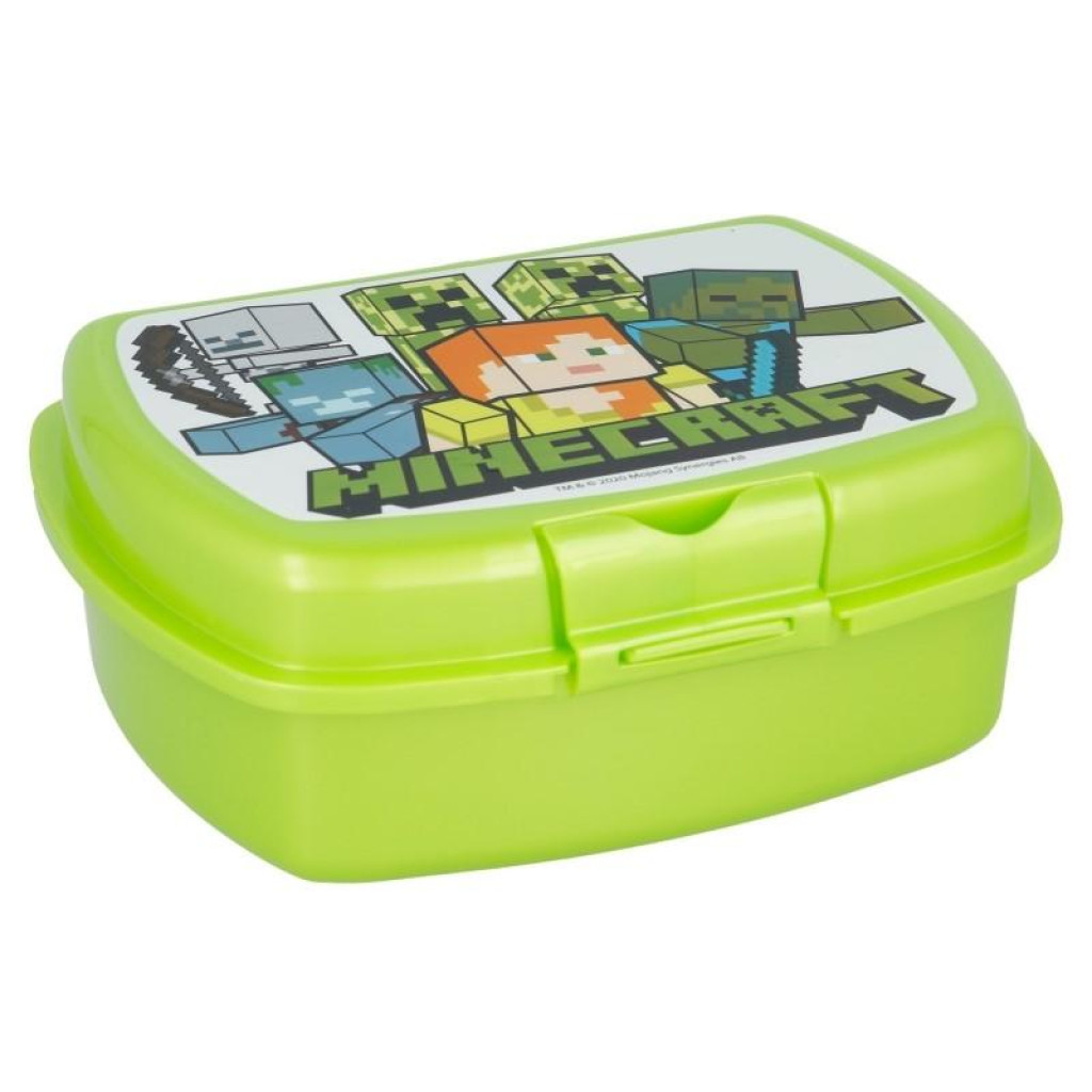 Box na svačinu s motivem Minecraft ve světle zelené barvě.