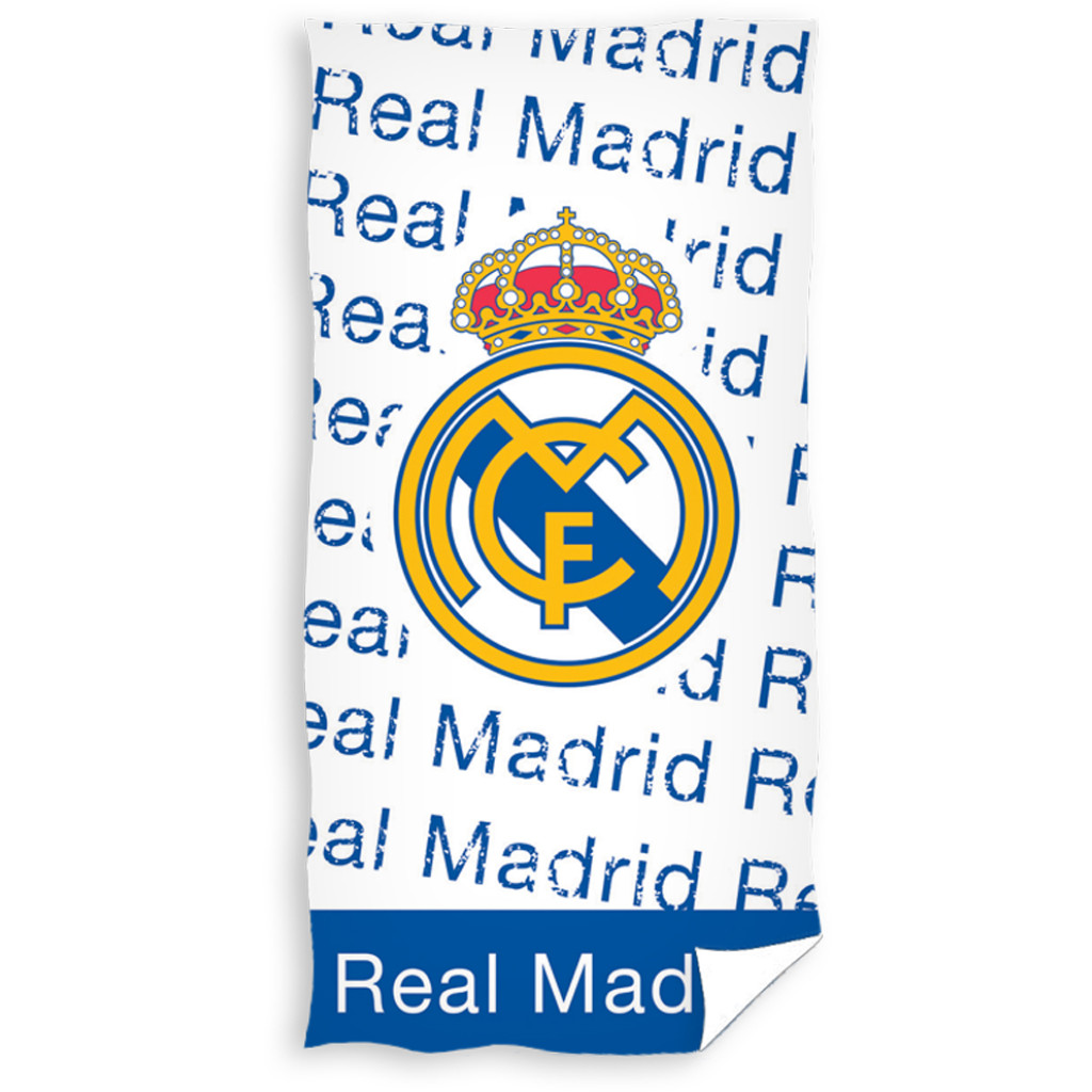 Plážová osuška Real Madrid Letras je v bielo-modrej farbe. Detská osuška je vyrobená z jemne strihaného froté - 100% bavlna, gramáž 320g / m2. Rozmer 75x150 cm. Detská osuška Real Madrid poteší fanúšikov tohto futbalového klubu.