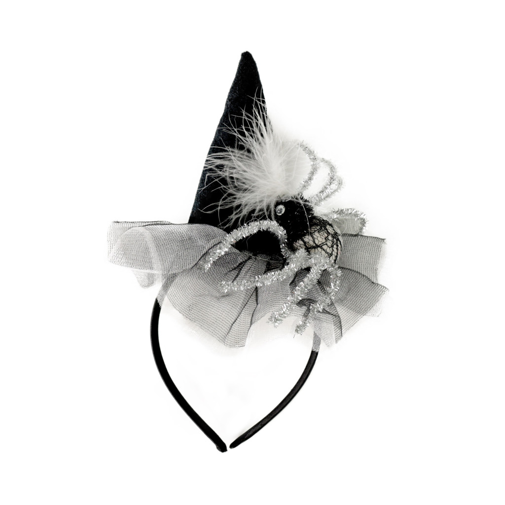 Nepřehlédnutelná čelenka s mini kloboučkem a pavoukem je senzačním doplňkem na párty či karneval. Ideální do vlasů při oslavě čarodějnic nebo halloweenu.