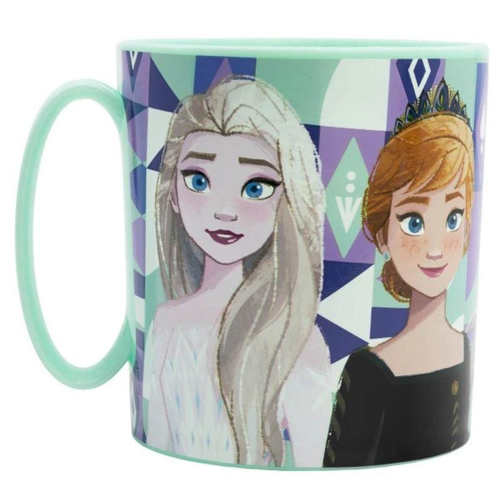Objem: 350 ml. Rozměry: 11 x 9 x 8 cm. Materiál: plast. Vhodný do mikrovlnné trouby. Výrobce: Stor. dětský hrnek frozen Anna a Elsa