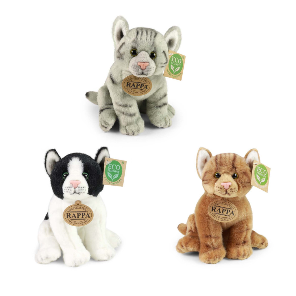 Nádherná plyšová kočka o velikosti 20 cm ve třech druzích. Kočka je vyrobena z kvalitní plyše a je tak součástí exkluzivní kolekce plyšových hraček RAPPA. Rozhodli jsme se jít zelenou cestou co nejméně zatěžující životní prostředí - cestou ECO-FRIENDLY. Co to vlastně ECO-FRIENDLY znamená? Výplň plyšové hračky je vyrobena z recyklovaných PET lahví. Tento materiál je zcela bezpečný, na omak…