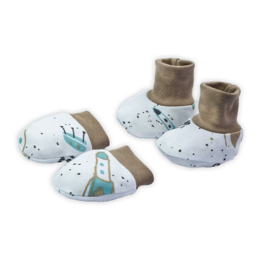 Krásny a praktický bavlněný set Nicol Star. Set se skládá z capáček a rukaviček. Capáčky a rukavičky jsou zdobeny obrázky a mají stahovací manžetky. Fantazie v oblékání nezná hranic a záleží jen na vás, jak set doladíte s oblečením kolekce Star. Složení: 100% bavlna.