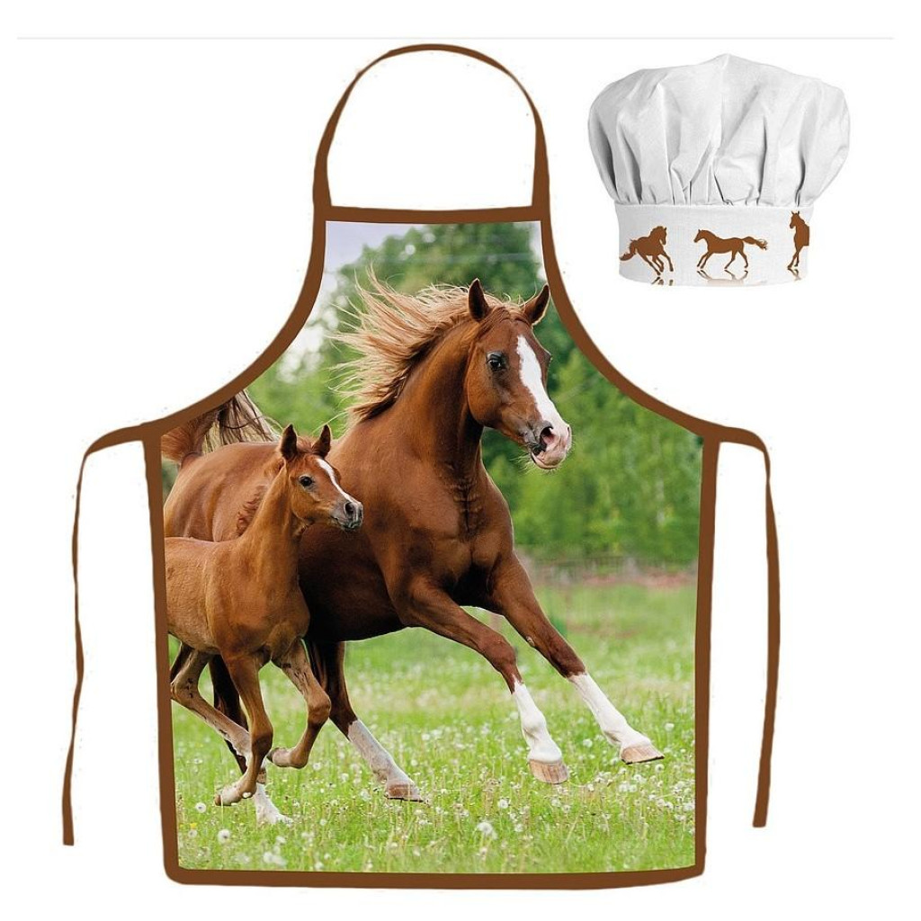 Kuchařský set s motivem Koně. Obsahuje zástěru na vaření a čepici. Věkově 3 - 8 let. Zástěra 42 x 51 cm. Oficiální licence.