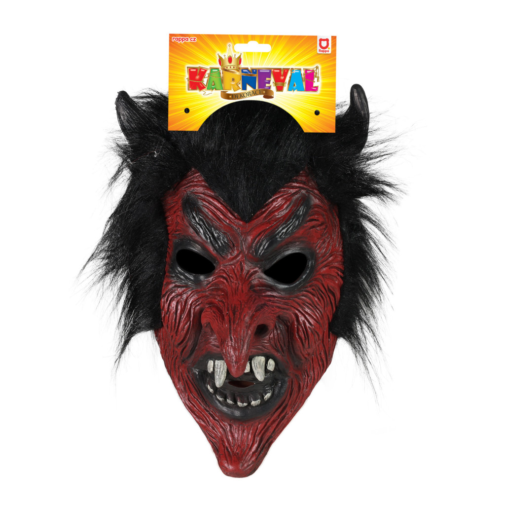 Senzační maska čerta je parádním doplňkem ke kostýmu. Latexová hrozivá maska je v červené barvě s černými vlasy. Vystraš své kamarády touto hrozivou maskou a zažij spoustu legrace.
