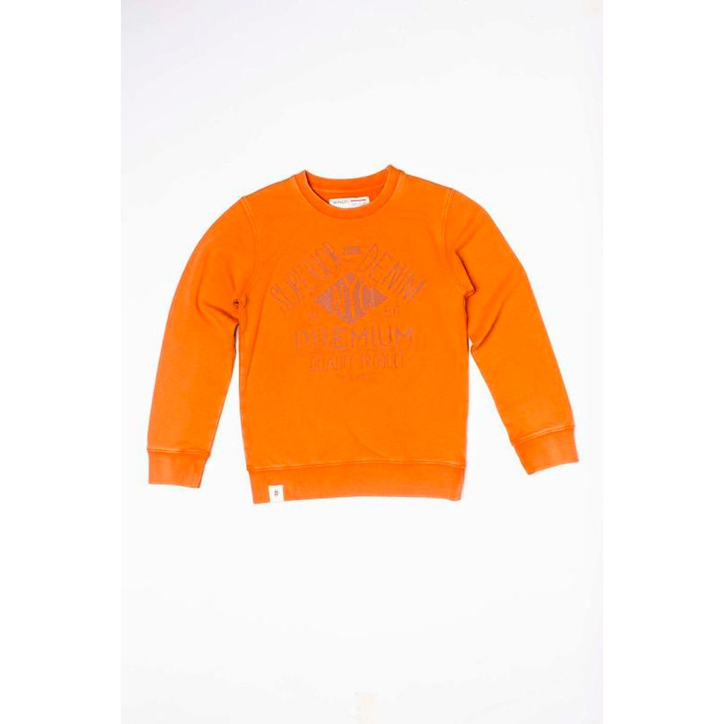 Mikina bez kapuce v oranžové barvě. Oblíbená značka Minoti. Dětské oblečení z materiálu 100% polyester